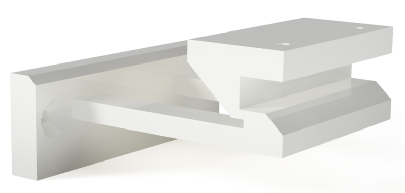 Child safety latch for cabinet door. This is designed to open with four pounds applied in the vertical direction, and withstand 20 pounds of pulling force without opening.